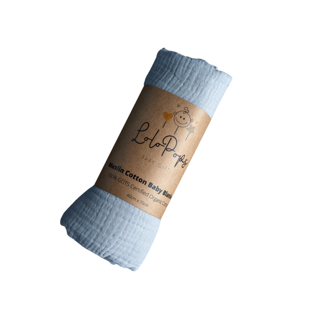 100% Organic Cotton Newborn Mini Travel Blanket - Light Blue