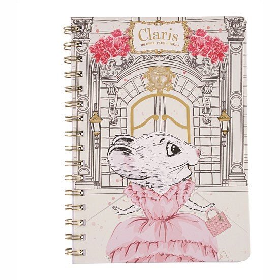An elegant Claris-inspired A5 notebook, adorned with some extra special glamour! This notebook has double-sided cover design with gold foil detail on front, patterned internal cover and pink lined pages.