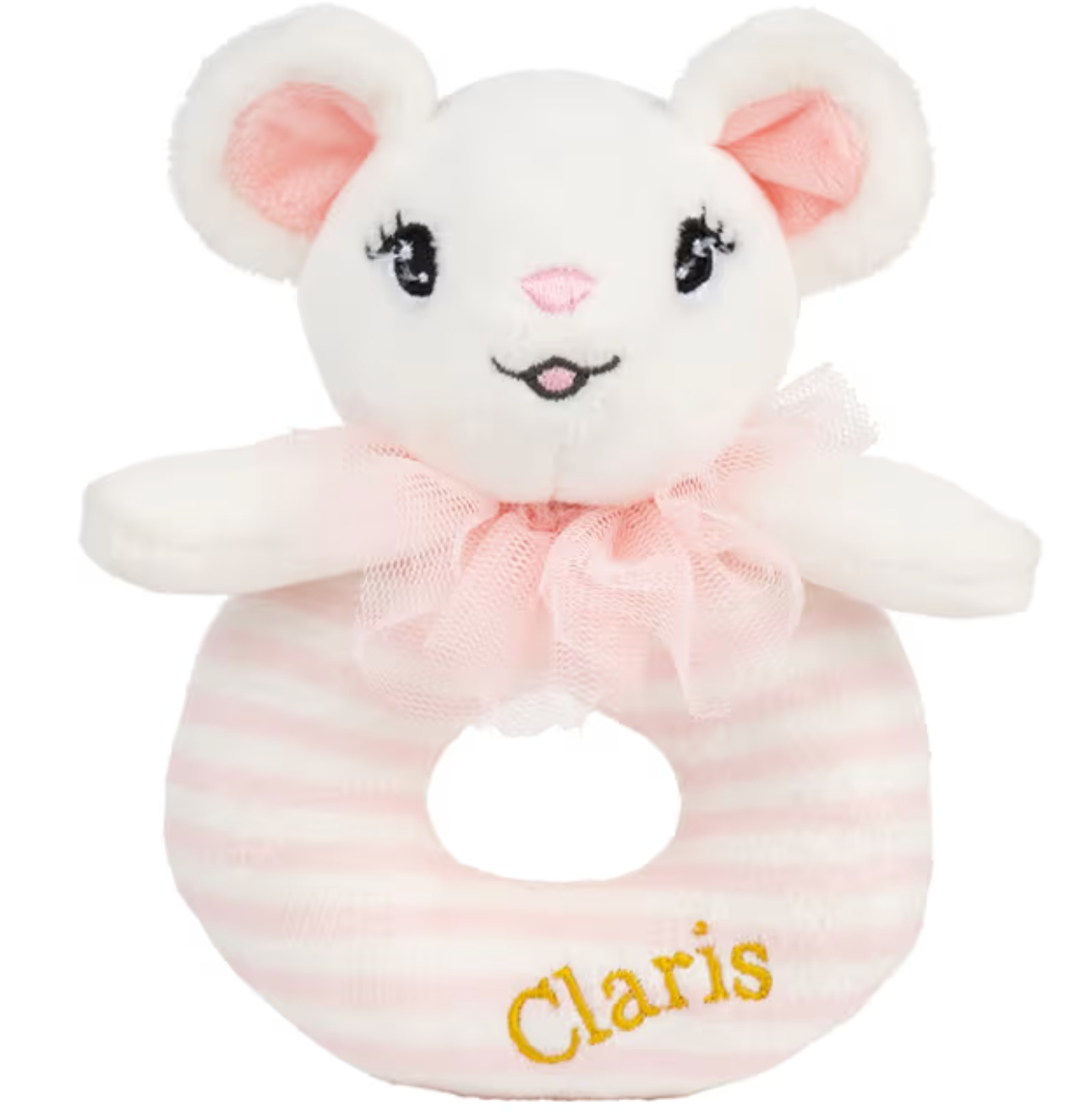This beautifully crafted Claris ring rattle is a plush friend and rattle in one!