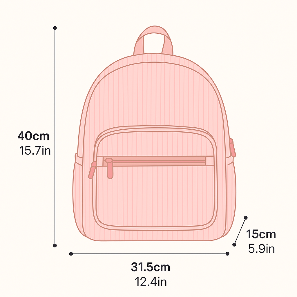 Elevate your daily essentials with our Corduroy Everyday Backpack for women and teens, available in four gorgeous colours: Pink backpack, Purple backpack, Blue backpack, and Green backpack. Crafted with soft, textured corduroy fabric backpack on the outside and durable polyester lining backpack inside, this backpack perfectly blends style and function.