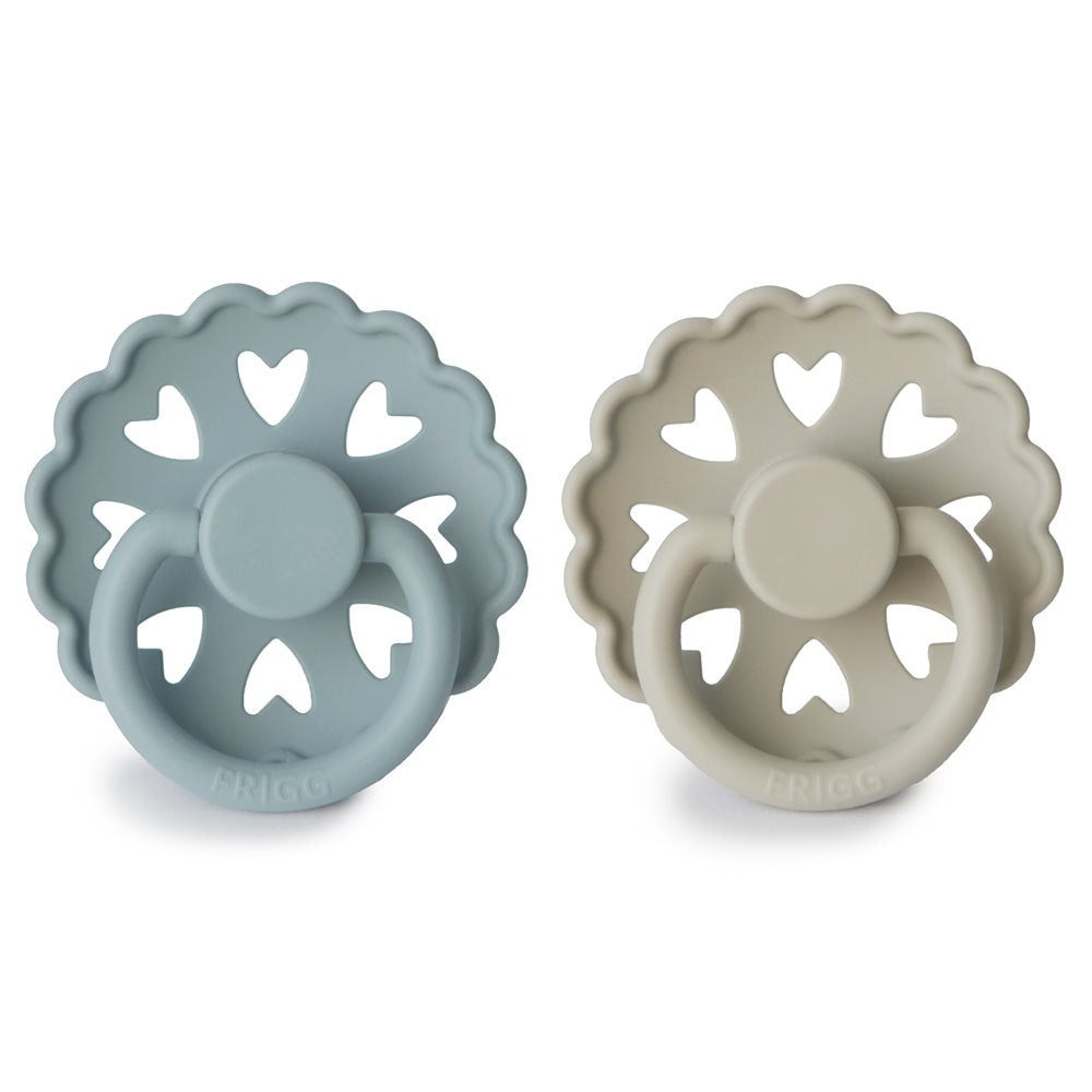 FRIGG Fairytale is a round pacifier with a round nipple shape. The round pacifier resembles a mother’s breast in both shape and material. The explanation for this is that when the child is about to breastfed, the tongue rolls up around the nipple and creates a vacuum, which causes the milk to flow. When the child sucks on a round pacifier, it rolls its tongue around it the same way.