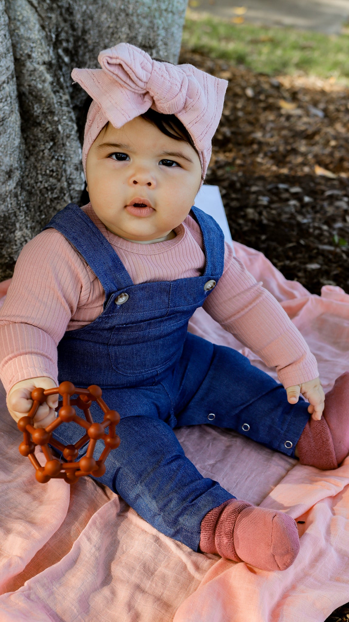 Long Sleeved Pink Organic Cotton Ribbed Bodysuit