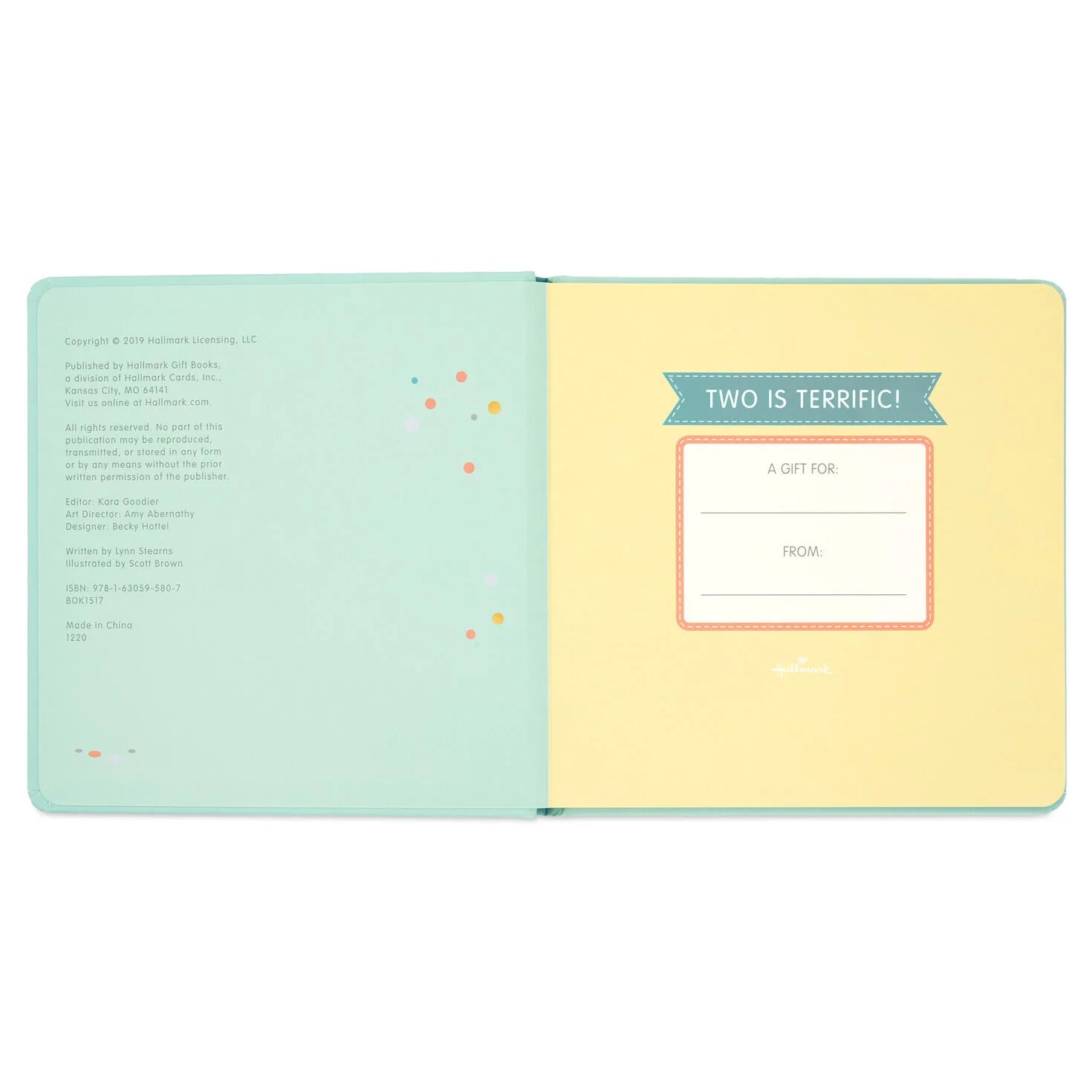 Mark a toddler's milestone birthday with this book's rhyming celebration of a 2-year-old. Its message looks back through the best moments of the first two years of life and looks forward to the joys, changes and sentimental journey of the days ahead. "Two Is Terrific!" makes a sweet gift idea from a grandma, godmother or family member who's far away.