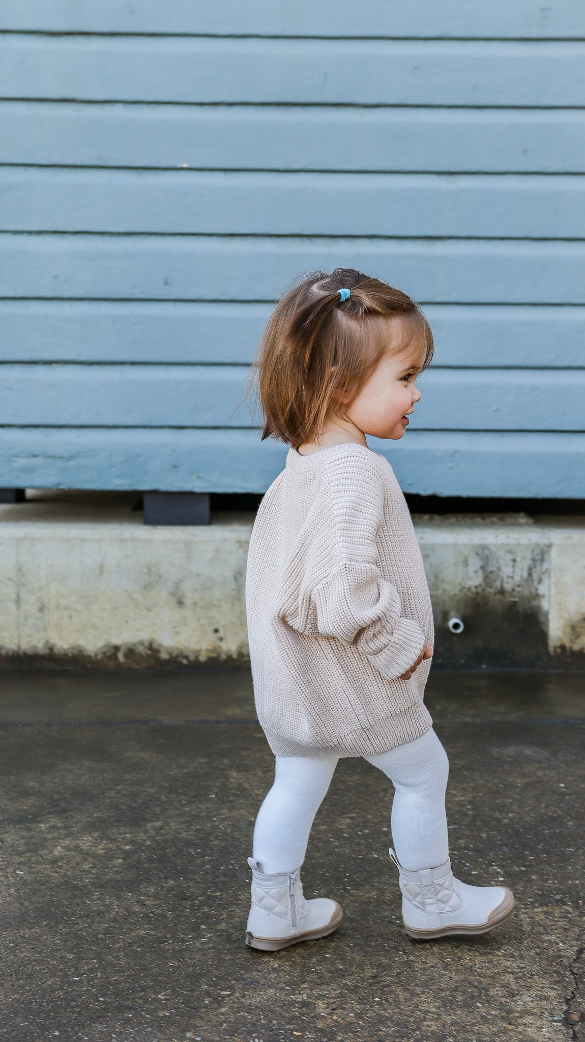 Featuring gentle, neutral tones and a timeless design, they’re ideal for layering during cooler months or wearing on their own for that effortlessly cosy look. Whether you're heading out for a stroll or winding down for storytime, this wardrobe staple is made to keep your little love comfy all day long.