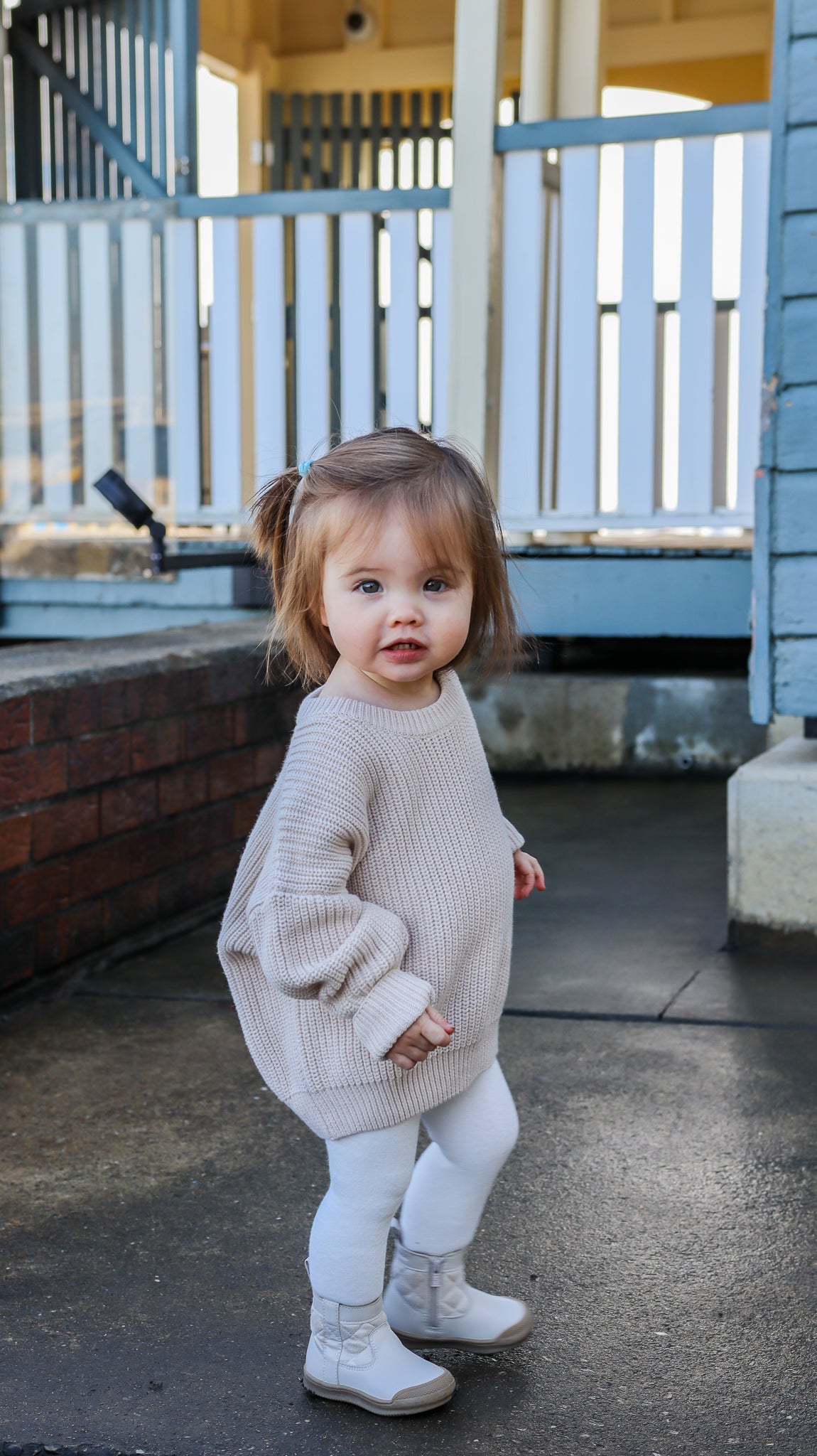 I love this jumper so much! Every time I put my daughter in it I get compliments she looks like a designer baby. So versatile, goes with everything and so very comfy for Bub. We want it in every colour now :)