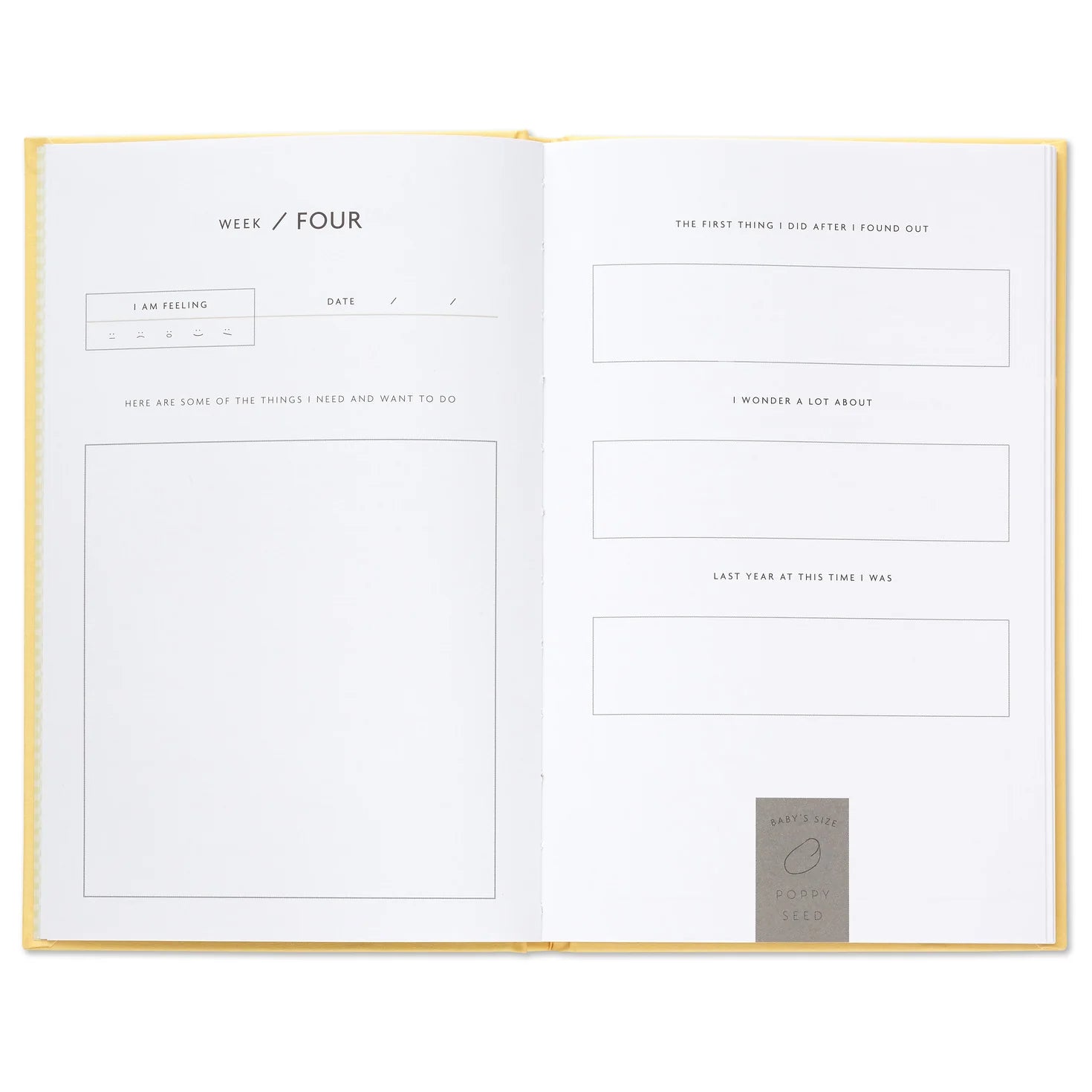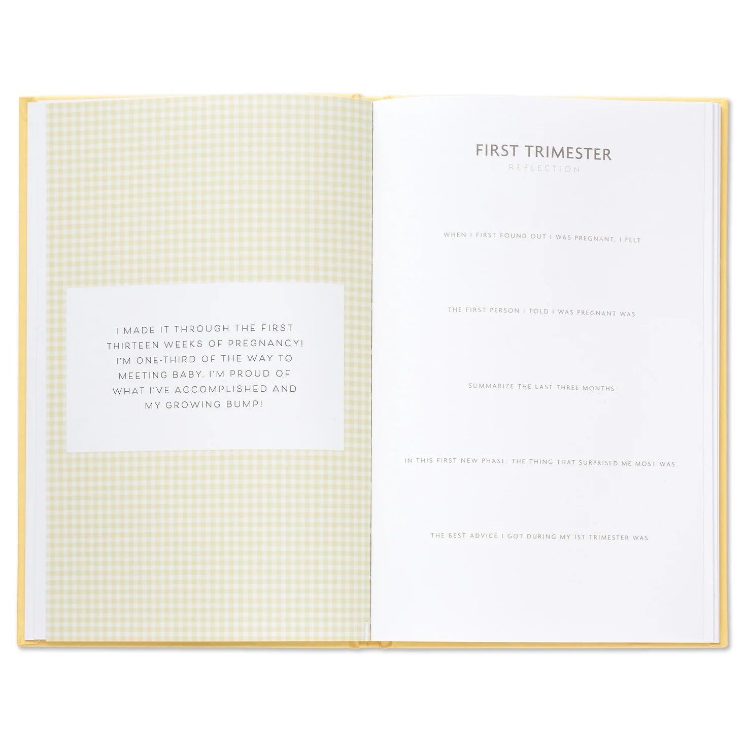 - Fabric-wrapped hardcover pregnancy journal features gold foil lettering